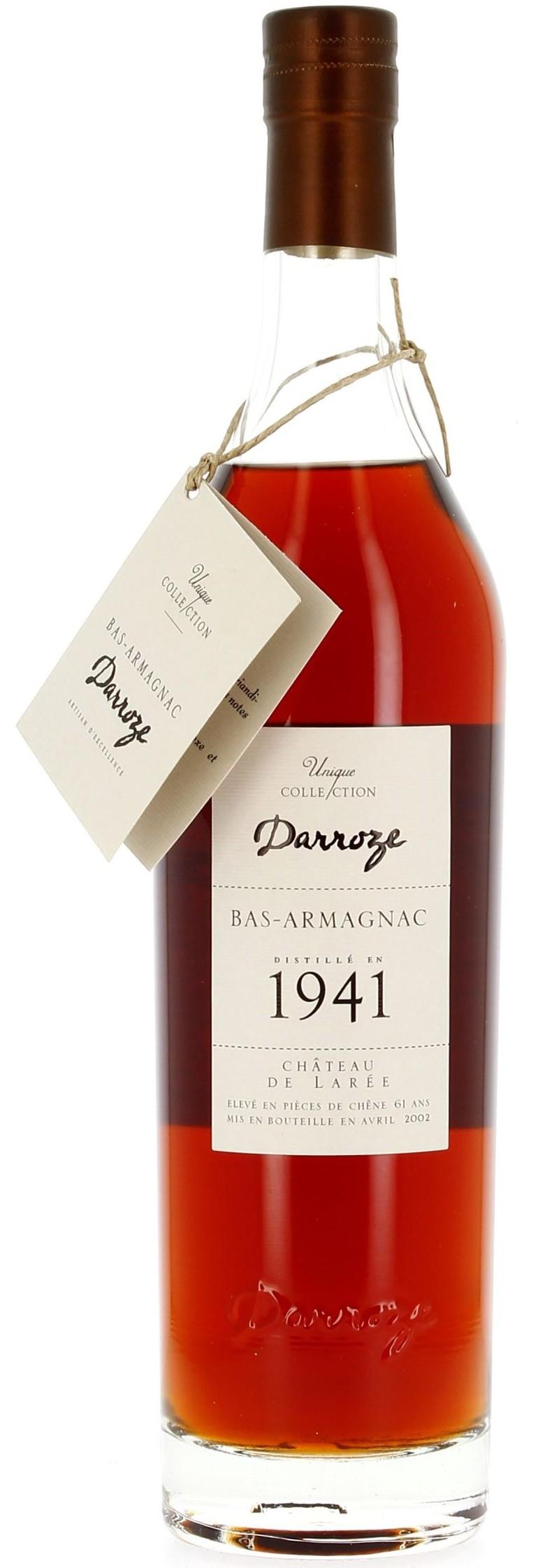 Darroze 1941 Des Chais de Francis Darroze je nejvzácnější a nejluxusnější armagnac z kolekce Unique Collection. Plněn byl z privátních sudů Francise Darroze. Stáčení probíhá na základě objednávky a stáří je tedy určeno datem lahvování. Nikdy však není kratší než 15 let. Jedná se o tzv. „single cask vintage“ armagnac. Armagnac z kolekce Unique je vždy pouze z jednoho sudu a plněn v sudové síle bez dalších úprav. Každý ročník pak pochází z jiného vinařství, kterých má rodina Darroze k dispozici přes 30. Bas Armagnac Darroze 1941 Des Chais de Francis Darroze je skutečným klenotem pro opravdové znalce a luxusním dárkem.