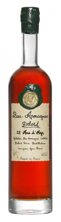25 let starý Armagnac, výtečné chuti. Baleno v dřevěném boxu, tudíž vhodné jako luxusní dárek. V chuti se objevují sušené švestky, ořechy s karamelovými dozvuky.