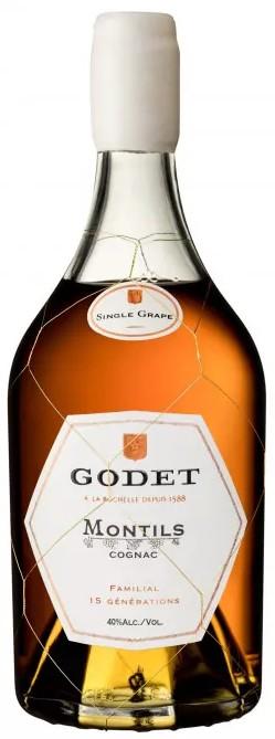 V současné době pokrývá 98 % vinic v oblasti Cognac odrůda Ugni Blanc. Koňaky značky Godet z řady Single Grape jsou vyráběny ze zbývajících 2 %. Vzácné, zapomenuté a skvělé odrůdy, jež zázračně přežily zkázu, kterou v roce 1875 napáchal révokaz neboli phylloxera, a o jejichž pěstování se rodina Godet spolu s místními vinaři zasazují již dvě generace, daly vzniknout jedinečným, odlišným koňakům. Jednou z těchto odrůd je Montils. Koňak vyrobený výhradně z této odrůdy zrál po destilaci 6 až 15 let. Aroma se vyznačuje tóny opáleného dřeva. V hedvábné, plné, zakulacené chuti se projevují tóny briošek, Bourbon vanilky a karamelu.