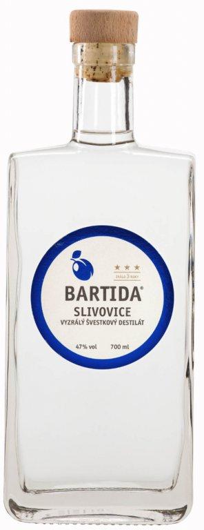 Nejznámější český ovocný destilát je vyroben z nejlepšího švestkového kvasu. BARTIDA Slivovice je vyráběna v měděných destilačních zařízeních Arnold Holstein, které zaručují stabilní kvalitu destilátu.Tradiční receptura požaduje, aby vyzrálý švestkový kvas prošel trojstupňovou destilací pro docílení čistoty a jemnosti chuti. Pecky v kvasu dodávají nápoji chuť třísloviny. Právě ony spolu s tříletým zráním zajišťují slivovici jemnou, zaoblenou chuť ovoce s příjemným podtónem uleželého destilátu. Preferujeme důkladné scelení v nerezových tancích bez vlivu dřeva či sušeného ovoce, aby si slivovice zachovala tradiční ovocnou vůni a chuť.