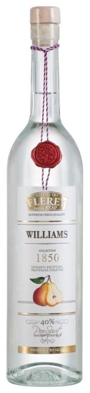 Fleret Hruškovice Williams je oproti ostatním druhům řady Collection 1850 vyráběna se sníženým, 40% obsahem alkoholu. Svou sbírku můžete rozšířit o ovocný destilát vyráběný destilací ovocných jednodruhových kvasů bez přídavku cukru nebo jiných ingrediencí. Chuť Williamsky z produkce FLERET je velmi oblíbená právě pro svou jemnost a vůni zralých hrušek.