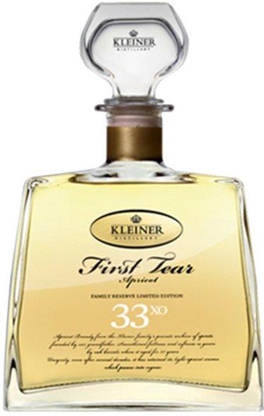 First Tear v názvu popisuje okamžik, kdy z destilačního přístroje vytékají první kapky čerstvého destilátu. Kleiner Xo Apricot 33 zrál nejdříve třiatřicet let v soudech z dubového dřeva. Pro dosažení dokonalosti byl potom uložen do kameninových nádob. Díky zrání v dubových sudech má vyhlazenou plnost a jemnost s lehkým meruňkových aroma, které přechází až do koňakového typu.