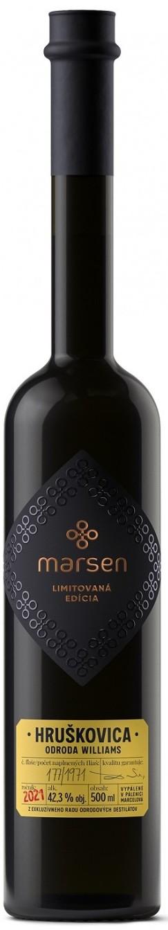 Hrušky Williams jsou velmi citlivá odrůda, která potřebuje speciální přístup při zpracování. Hruškovice Wiiliams od Marsenu je charakteristická plným a nezaměnitelným ovocným aroma, které při servírování zaplní nejen vaše čichové buňky, ale celý okolní prostor. Prémiovost této pálenky podtrhuje hned několik získaných ocenění.