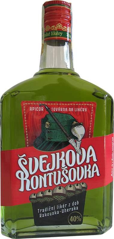 Apicor Švejkova Kontušovka 40% „Rum, kontušovka, čert, jeřabinka, ořechovka, višňovka a vanilková“ – kdo by neznal tuto slavnou větu rytmistra Königa z Haškova románu Osudy dobrého vojáka Švejka, kterou pronesl, když ucítil opilecký dech závodčího z Putimské strážnice. Podle čeho ale poznal kontušovku? To snadno zjistíte, Stačí ochutnat. Historie tohoto likéru sahá do Polska sedmnáctého století, ale oblibu si získal především v zemích Rakouska–Uherska.