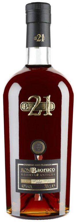 Rum Baoruco 21 je vyjádřením čistoty a dominikánské tradice pomalého zrání nejvybranějších lihovin z cukrové třtiny. Velmi limitovaná a kontrolovaná výroba. Má komplexní chuť a jedinečné aroma, které ocení i nejnáročnější znalci.