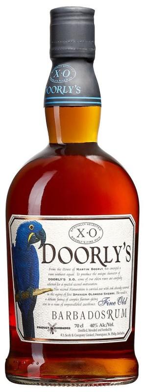 V hloubi bujných tropických pralesů Barbadosu žije vzácný pták, modrý papoušek Ara. Místní legenda praví, že kdo se s ním setká, toho nemine šťastná událost. Na etiketě rumu Martina Doorlyho takového papouška nalezneme, byť jen ve výtvarné podobě. Milovníci tohoto rumu ovšem i tak věří, že má svoje kouzlo a moc, proto mají tento rum vždy připravený po ruce k ochutnání. Rum Doorly´s XO je vytvořený pomocí staré tradice. Nabízí dokonalost zvláštního způsobu míšení starých rumů různého stáří a dlouhého dozrávání ve španělských sudech po Sherry Oloroso. Výjimečně hladká, nasládlá chuť po banánech a rozinkách, bude velice dlouho okupovat vaše patro. Doorly´s je výborný rum. Barbados leží ve východní části Karibského moře a je součástí řetězce ostrovů zvaných Malé Antily. Barbados je skutečným domovem rumu, je tu nejstarší známá palírna, založená již v roce 1663. V 18. století byly považovány rumy z Barbadosu spolu s rumy z Jamajky za nejkvalitnější v oblasti. Po americké revoluci si George Washington, ke své inauguraci v roce 1789, přál výslovně sud rumu z Barbadosu.