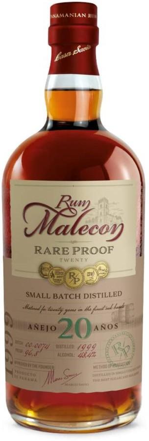 Exkluzivní panamský rum Malecon Rare Proof 1999, který zral dlouhých 20 let v teplém exotickém podnebí. Patří do limitované edice Rare Proof. Díky vysokému 48,5 % obsahu alkoholu má výraznou chuť a vůni. Destilován byl v roce 1999 pomocí moderního multi-column still. Následně dozrával v dubových sudech, díky kterým získal jemně pikantní chuť karamelu, kouře, čokolády a skořice.