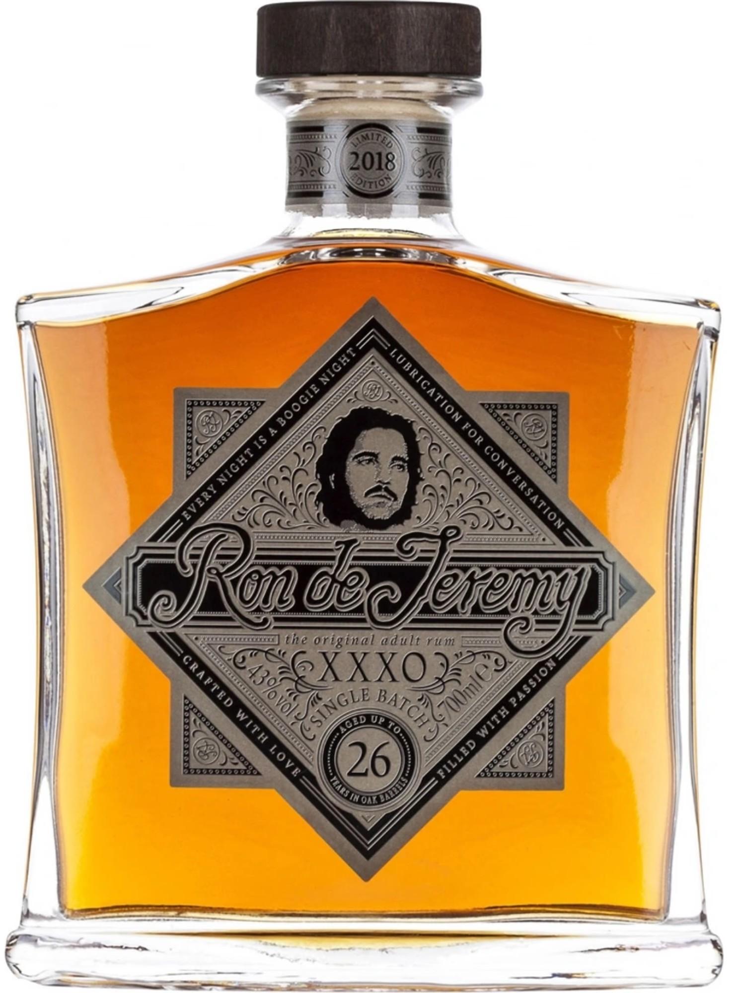 Ron de Jeremy Rum XXXO 26yo Limited Edition 2018 0,7l 43% - Srdce letošního blendu směsi tvoří dva vynikající sudy rumu z Trinidad Distilleries, které zrály v dubovém sudu od roku 1991. Tento vzácný a velmi starý rum tvoří 13% blendu XXXO 26. Blend dále doplňují jemné rumy z Barbadosu, Dominikánské republiky a Panamy. Tímto spojením vznikla hladká, sofistikovaná a luxusní rumová „jízda“ s Ronem de Jeremym.