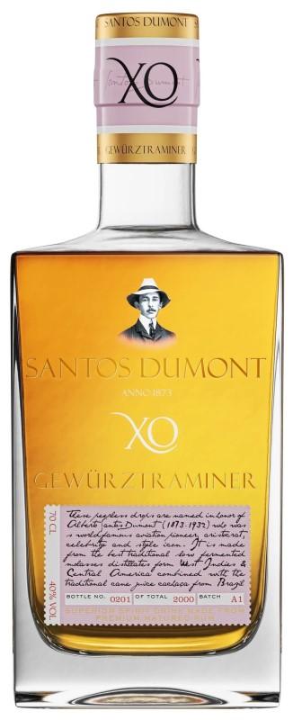 Tento skvěle vyzrálý nápoj závěrečně zrál ve starých a velmi pozorně vybíraných sudech, v nichž dříve zrálo bílé víno vyrobené z odrůdy hroznů Gewürztraminer (tramín červený). Vliv tramínových sudů se odrazil v intenzitě a spolu s rostlinnými a tropickými tóny pomohl vytvořit velkolepý chuťový zážitek. Je to rum, který představuje skutečně unikátní kombinaci těch nejlepších výrobních tradici ve světě elegantního vína a dobře vyzrálého prémiového rumu.Rum Santos Dumont XO Gewürztraminer se vyrábí výhradně jen v malých dávkách a každá láhev je individuálně očíslovaná.