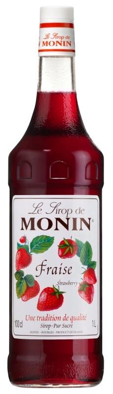 Monin s příchutí jahodové šťávy. Sirupy této firmy jsou profesionální barmanské sirupy a součást každého dobrého baru. Chuť a aroma koktejlů a ochucených káv.