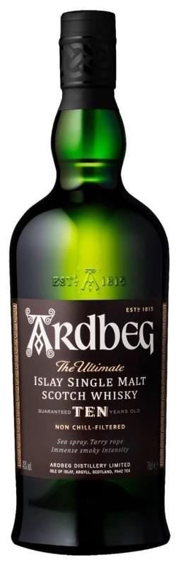 Ardbeg 10 let je plná whisky, barva připomíná jemné sherry. V chuti je cítit kouř, slanost a jódová suchost, zároveň však mírná nasládlost. Dokončení těžší, doznívá jód. Palírnu Ardbeg založil v roce 1815 John McDougall na místě dřívější černé palírny.