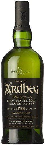 Ardbeg 10 let je plná whisky, barva připomíná jemné sherry. V chuti je cítit kouř, slanost a jódová suchost, zároveň však mírná nasládlost. Dokončení těžší, doznívá jód. Palírnu Ardbeg založil v roce 1815 John McDougall na místě dřívější černé palírny.