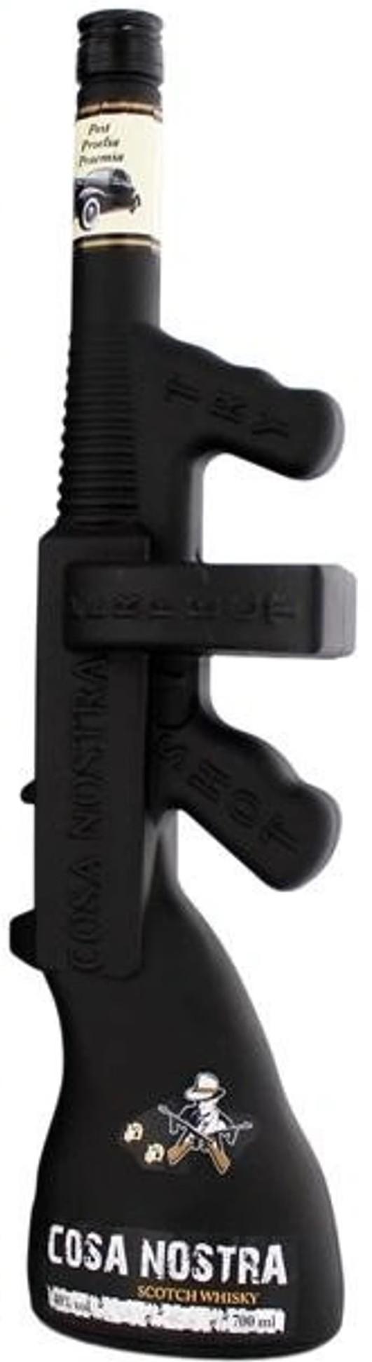 Cosa Nostra je replika zbraně Tommy Gun , která se používala ve dvacátých letech minulého století , za éry prohibice , Al Caponeho a Lucky Luciana. Uvnitř je jemná tříletá skotská. Unikátní láhev je dodáván s kovovou Cosa Nostra pole. Ať už jste fanouškem gangsterek nebo hledají speciální dárek - se tato mimořádná, těžké získat produkt, který bude tou správnou volbou!
