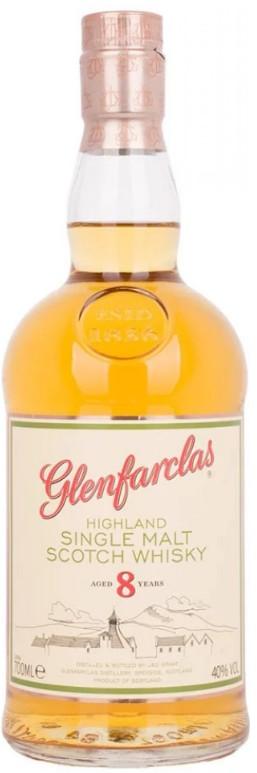 8letá Glenfarclas je vynikající whisky z rodiny Glenfarclas. Aroma je plné jemných ovocných tónů. Lehká a harmonická chuť nese stopy ovoce, vanilky a oříšků na pozadí. Zakončení je dlouhé a čerstvé, chutnající po sladu.