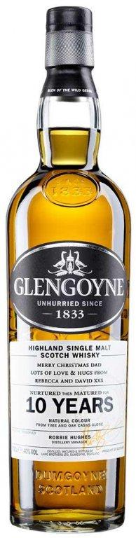 Měkká a sladká 10-letá single malt whisky z palírny Glengoyne. Hladká, ovocná a neuvěřitelně zjemněná whisky. Čerstvé zelené jablka, karamel a náznak ořísků. Toto je chuť nejpomalejší destilace ve Skotsku, ječmen se suší na horkém vzduchu - nikdy se nesuší na rašelinovém kouři - a ručně vybrané sudy po sherry vyrobené z evropského a amerického dubu.