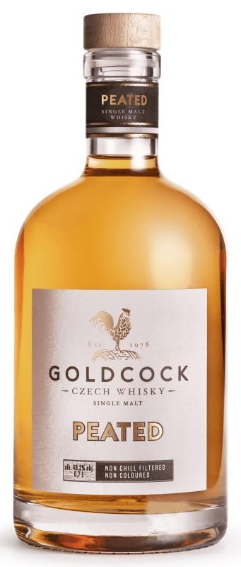 Gold Cock Peated Single Malt je česká nakouřená whisky. V roce 2016 si ve firmě Rudolf Jelínek řekli, že zkusí jít neprošlapanou cestou a vytvoří první českou nakouřenou whisky. Při sušení sladu ve Sladovně Bruntál spálili 3x více rašeliny než obvykle a dostali se na úroveň cca 30 PPM, která i ve Skotsku označuje silně nakouřené whisky. Po pomalé destilaci zrál destilát v repasovaných sudech z Bednářsví Bařina. Tato whisky je jiná nejen díky jasně rozpoznatelnému silnějšímu nakouření, ale především tím, že právě větší množství rašeliny dává tomuto destilátu zcela nový rozměr. Jedná se o první whisky Gold Cock, která není charakteristicky ovocná, ale jak ve vůni, tak v chuti se prosazují květinové tóny. Přirozeně se suchým uzeným dozvukem. Stáčeno v síle 49,2 % alkoholu, přičemž procento alkoholu ve whisky odpovídá rovnoběžce, která protíná sídlo společnosti RUDOLF JELÍNEK.