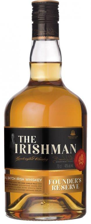 The Irishman Founder's Reserve je unikátní whiskey, která je smíchána ze 70 % Single Malt a 30 % Pot Still whiskey, což není zcela obvyklé, ale díky této receptuře se jedná o opravdu velmi chutnou whiskey. The Irishman Founder's Reserve je třikrát destilovaná whisky, která zraje v sudech po bourbonu. Vůně jemného koření, černého pepře a broskví. Chuť koření, tmavé čokolády a bourbonového sudu. Dlouhé zakončení s tóny dubu a mléčné karamely.
