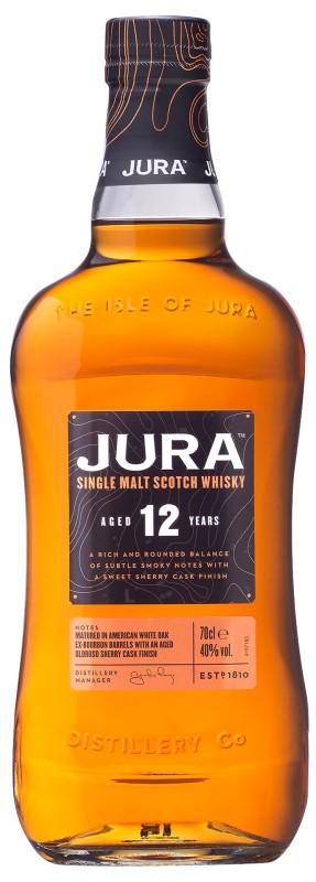 Isle of Jura 12 YO je směs příchutí pocházejících z kombinovaného zrání v sudech z amerického bílého dubu a v sudech po sherry. Aroma nabízí vůni mandlí, ananasu a pražené kávy. Jura 12y je whisky nabitá ovocem a kořením, z jejíž chuťové palety vystupuje kromě bohatých tónů citrusů a ananasu také příchuť čokolády, zázvoru a skořice.