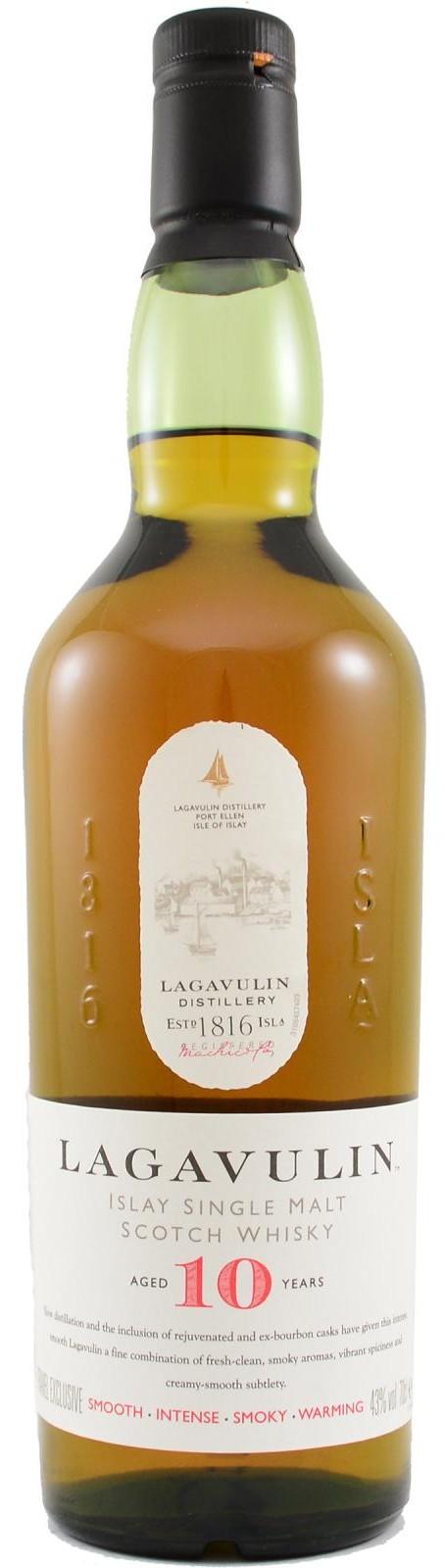 Lagavulin 10 Y.O. je novým přírůstkem slavné palírny. Ve své bohaté chuti spojuje hladkou a kořeněnou chuť s klasickými tóny kouře a koření. V závěru si zachovává čistotu a typickou hřejivost. Velmi elegantní whisky, která potěší zejména milovníky značky Lagavulin.
