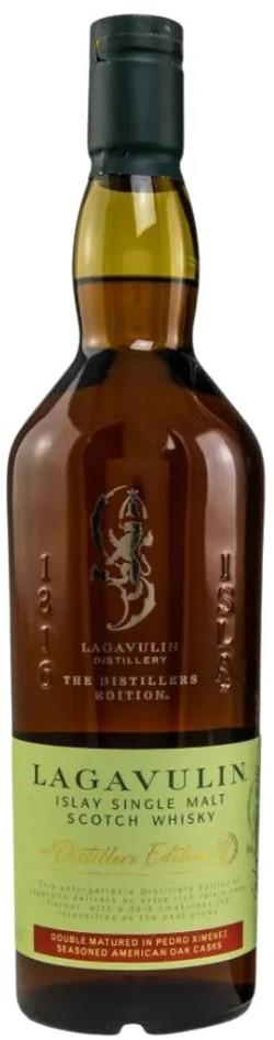Lagavulin Distillers Edition, která zrála v amerických dubových sudech a v sudech po sherry Pedro Ximénez, chuť a vůně je doplněna typickou pobřežní kouřovastí v jádru této klasické islay jednosladové whisky a přináší do ní nádech sladkého ovoce.