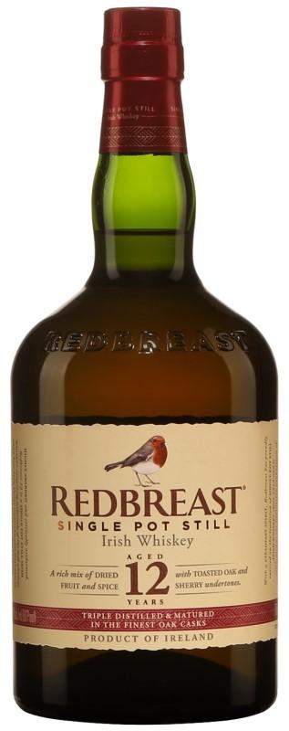 Redbreast je velmi speciální whiskey mezi všemi Irskými destilériemi. Poprvé uvedena na trh v roce 1939 jako první pot-still whiskey. Zraje minimálně 12 let v sudech po sherry a Bourbonu. Redbreast 12 Year Old získala mnoho cen, mezi jinými i dvakrát zlato v roce 2005 na San Francisco World Spirits Competition. Podle znalců asi nejjemnější irská, co existuje.